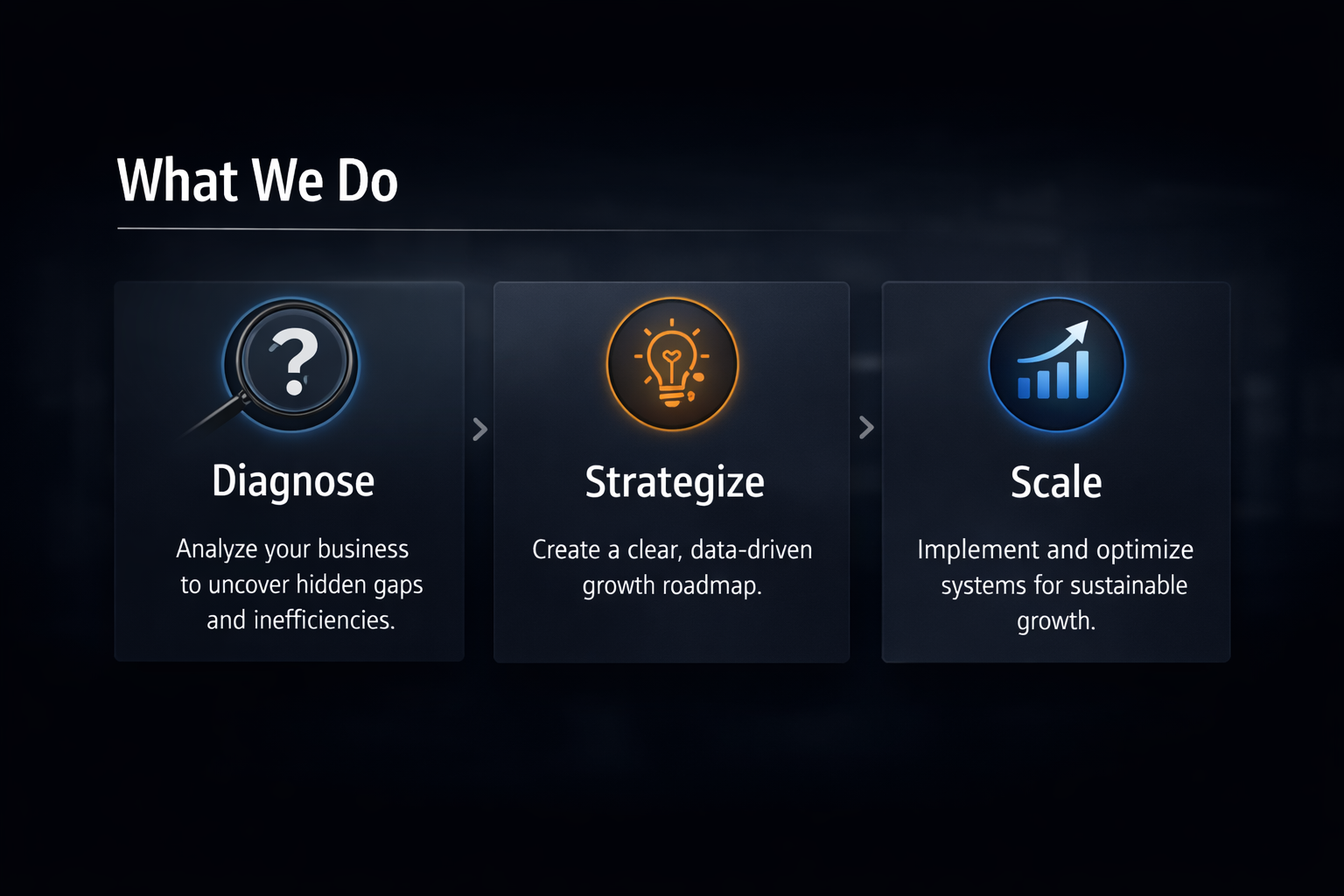 Our approach is analytical, practical, and growth-focused. We do not rely on vague ideas or generic advice. We study the current business position, identify what is limiting performance, and recommend targeted improvements that create real direction.